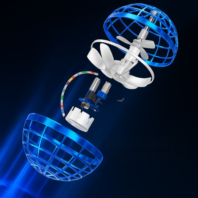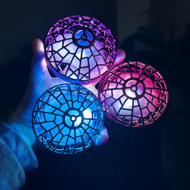 Grùce à sa technologie gyroscopique et ses lumiÚres LED colorées, cette balle volante crée un effet galaxie hypnotisant qui émerveille petits et grands.